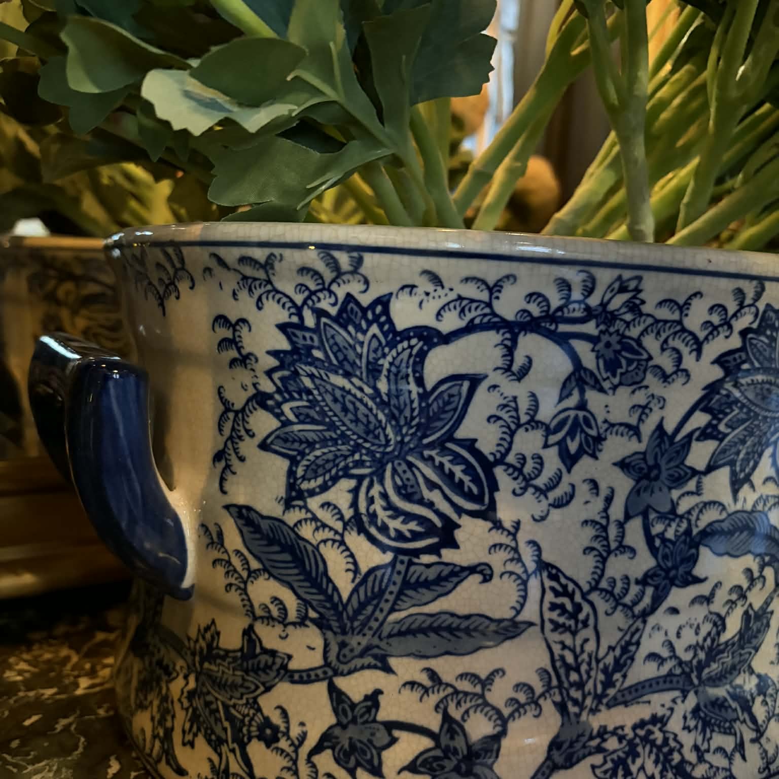 - Blåvit dekor med klassiskt blommönster