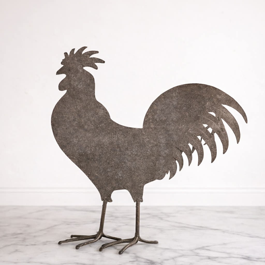 Charmig och dekorativ tupp i metall med stilren siluett och rustik finish. En fin inredningsdetalj som passar perfekt i kök, på hylla, fönsterbräda, skänk eller som del av ett lantligt stilleben.