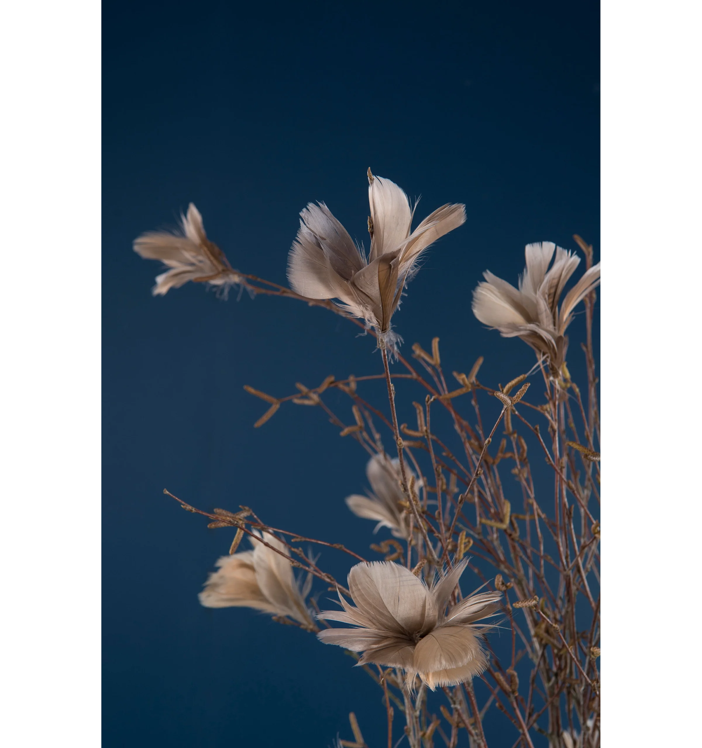 Fjädrar med ståltråd, formade som blommor. Perfekta för att dekorera grenar eller blomsterarrangemang.