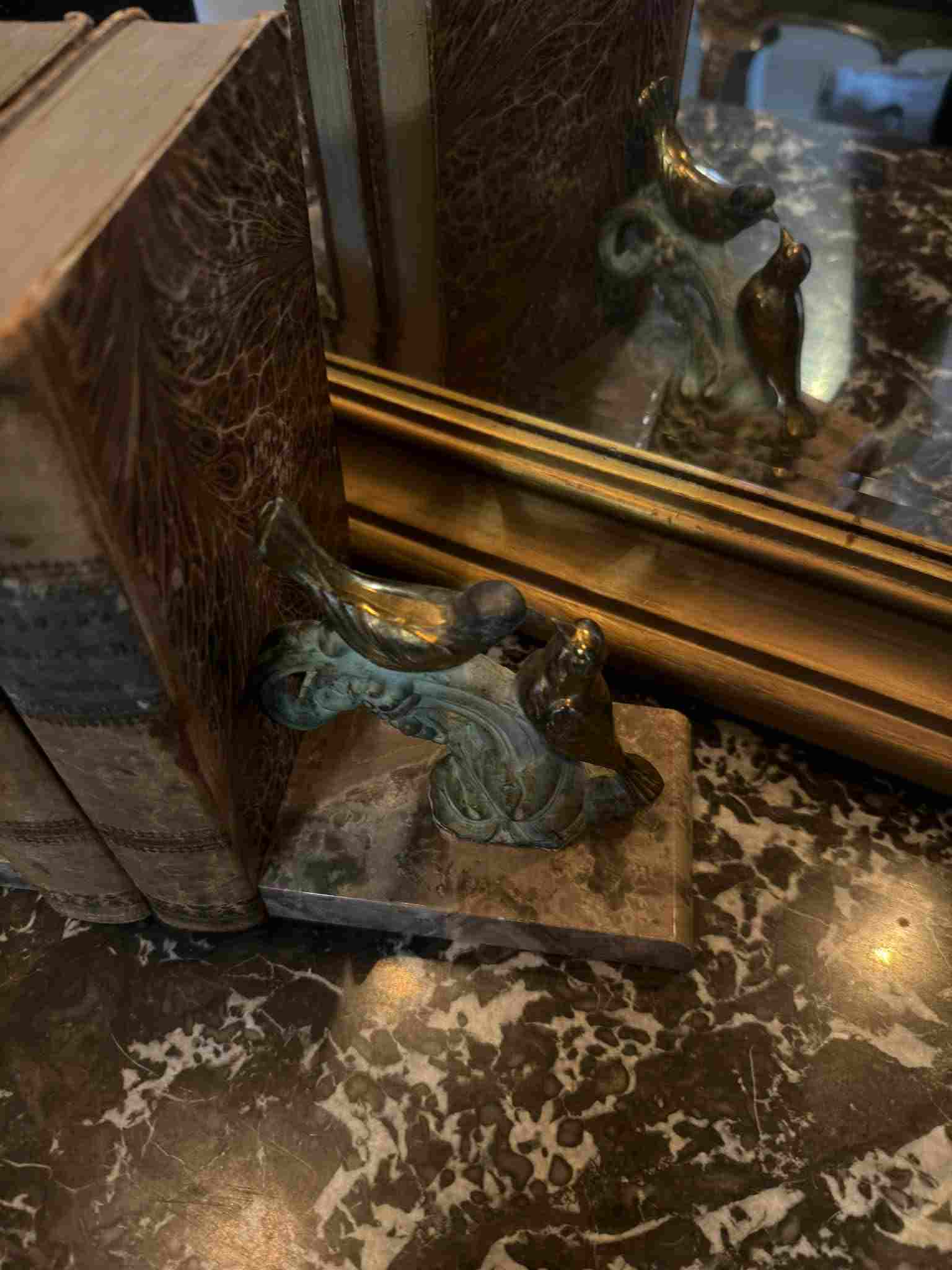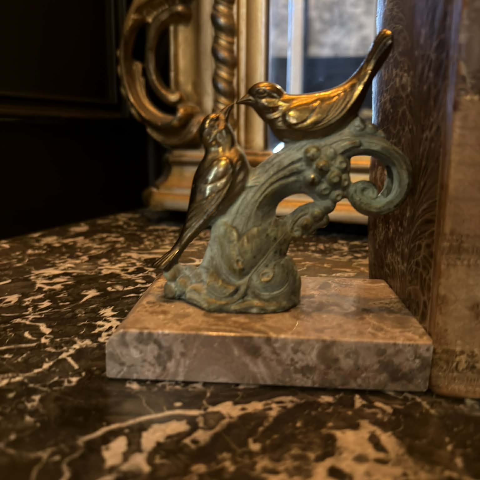 Franska dekorativa bokstöd i marmor & metall – fågelmotiv, par