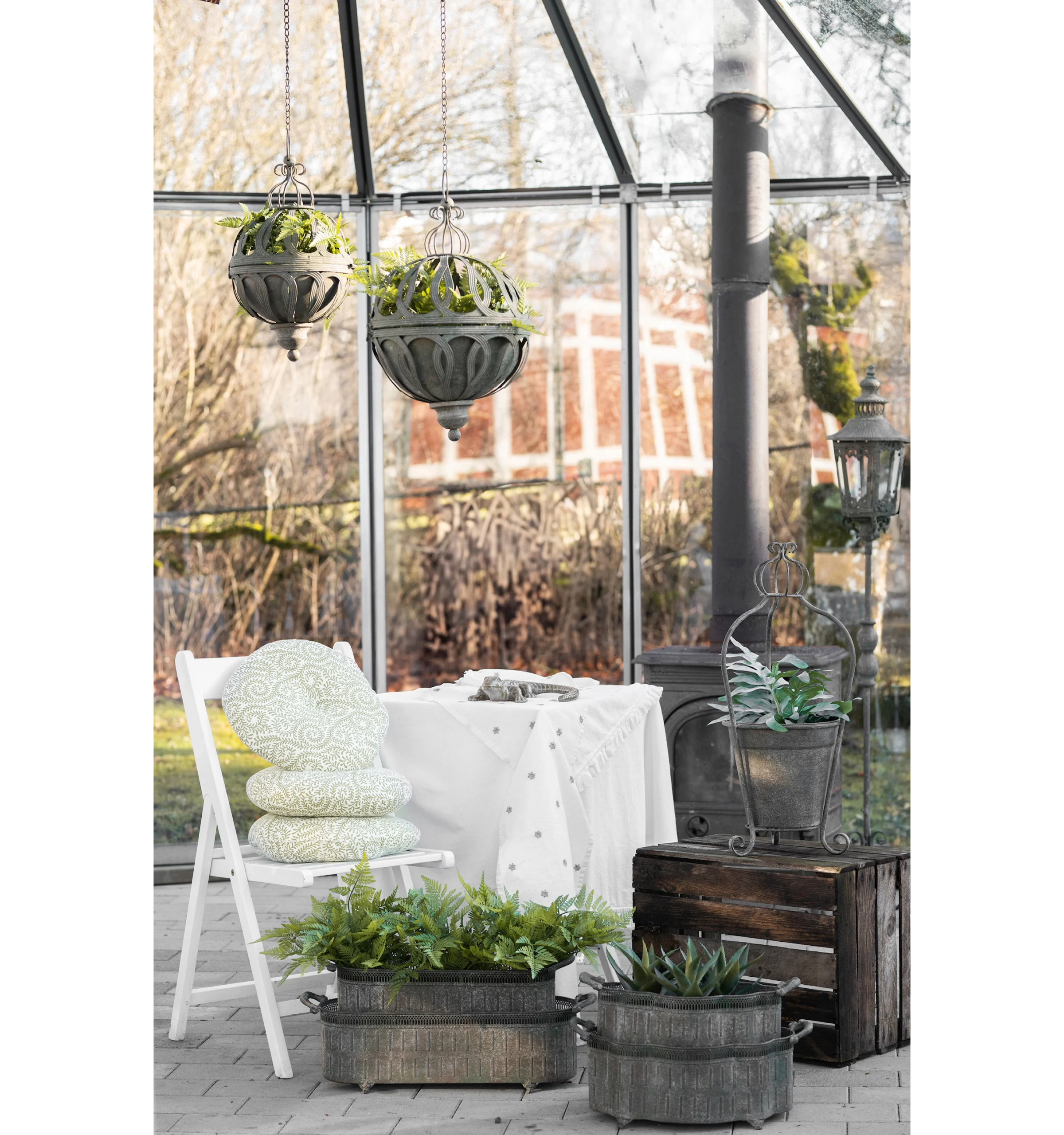 Låt trädgården fyllas av växter och grönt med detta set med två krukor med handtag. Tillverkade i metall.