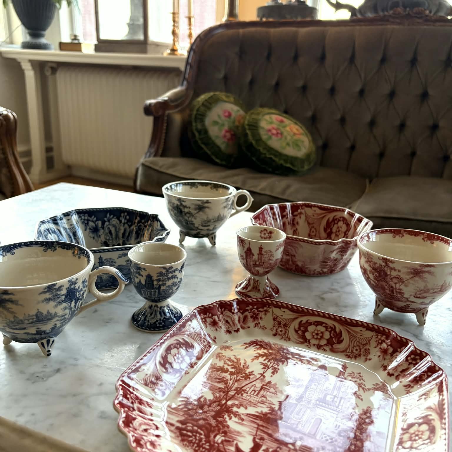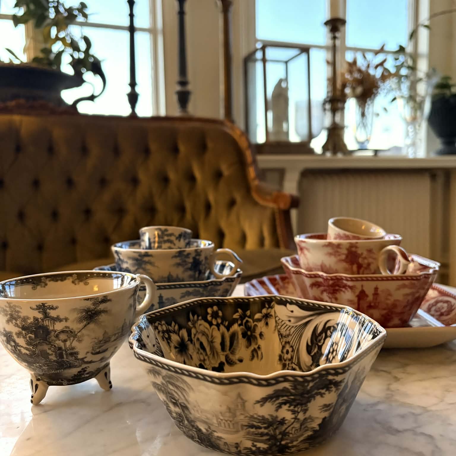 Serveringsskål i klassisk dekor – svart, röd eller blå