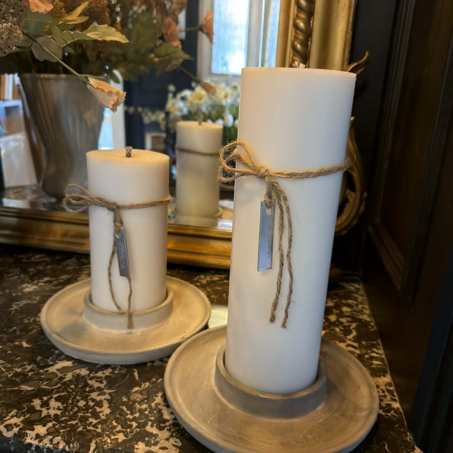 - Stor dekorativ ljushållare / ljusfat för blockljus