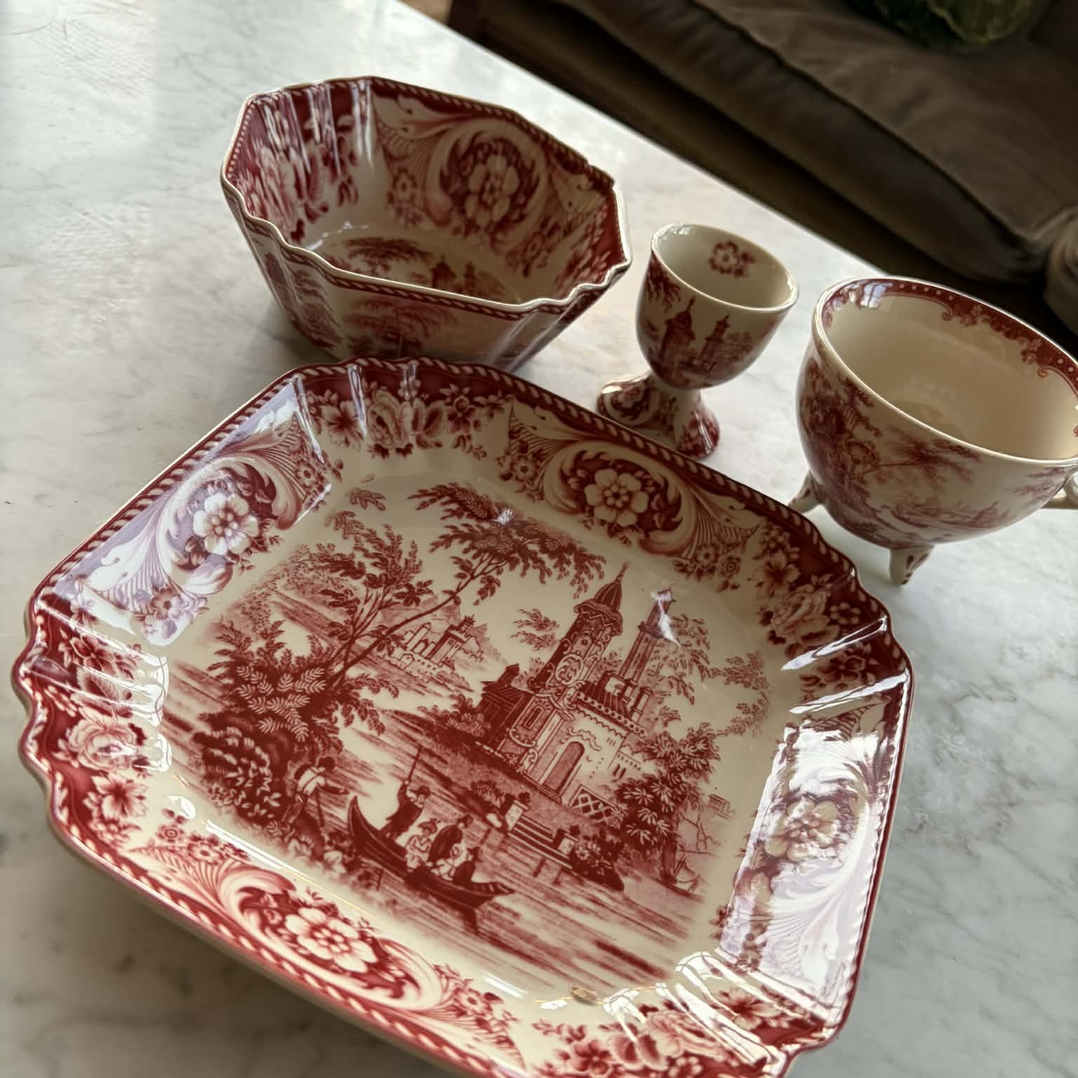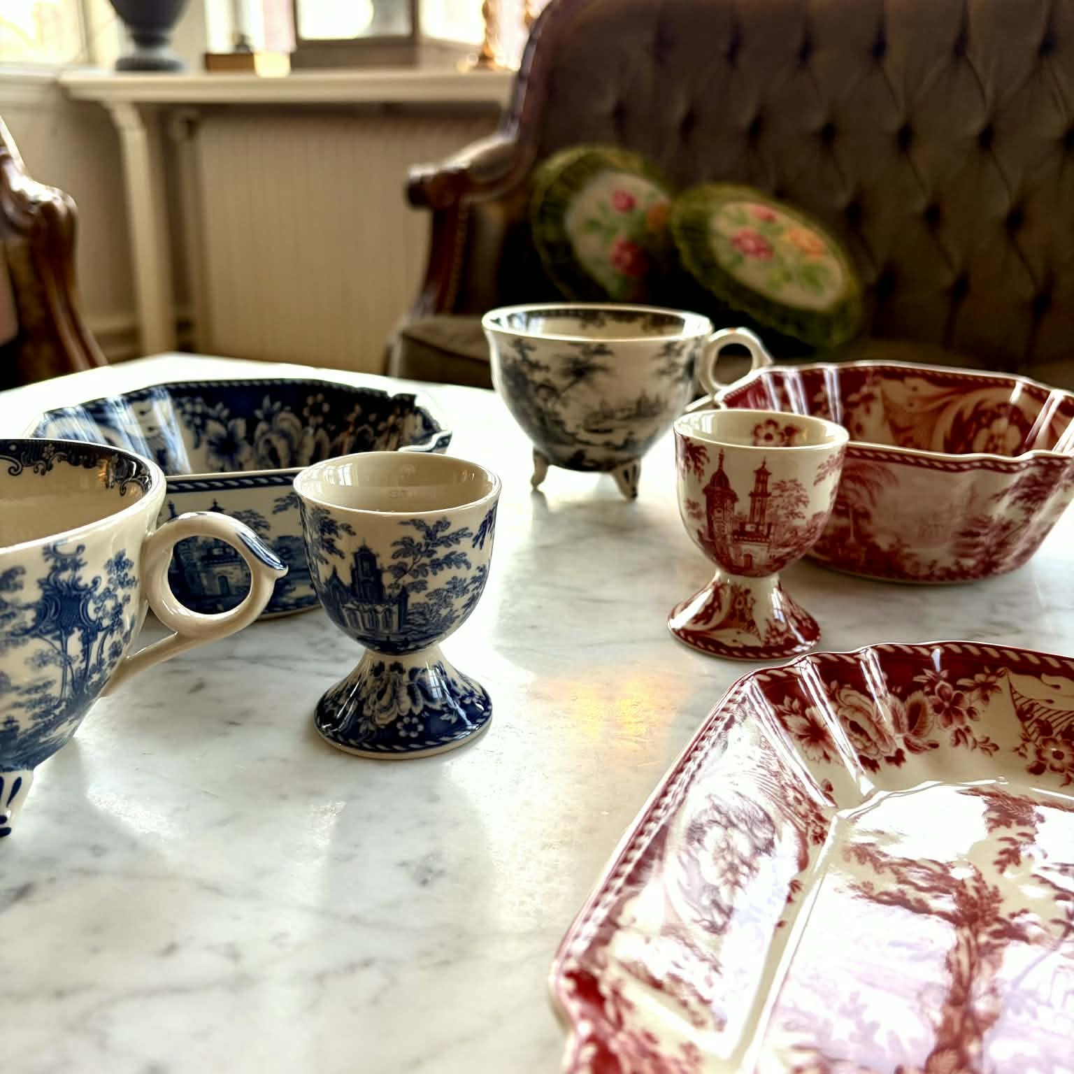 Uppläggningsfat i klassisk dekor – svart, röd eller blå